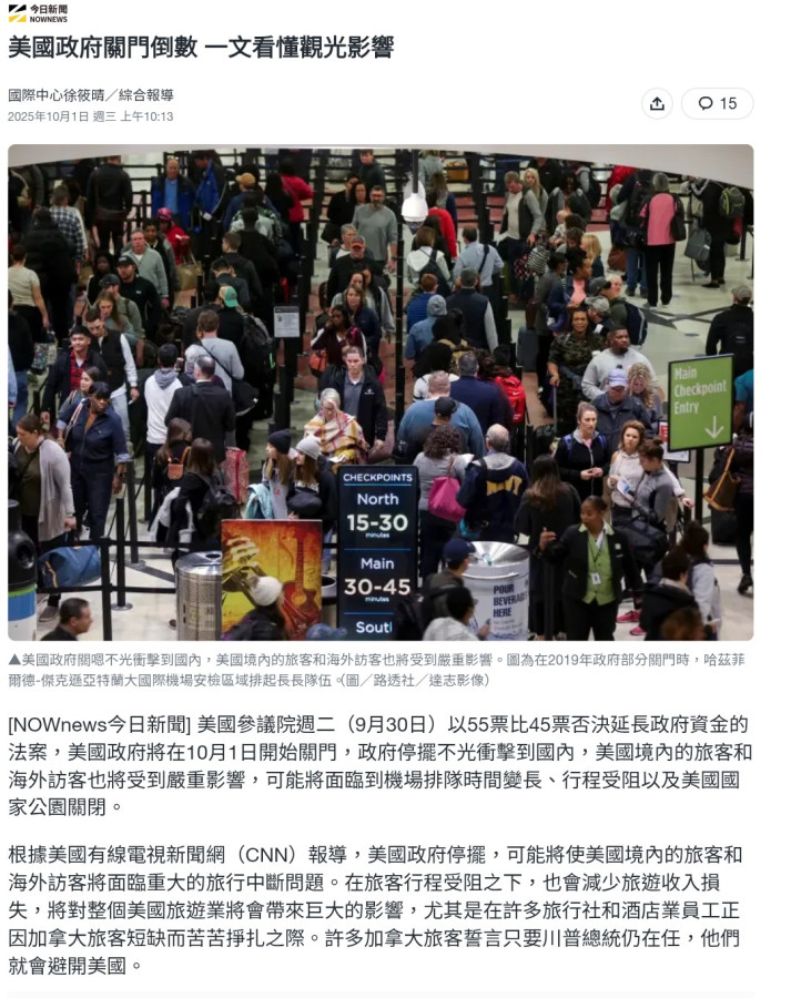 回覆 yesk:已經55:45否決延長政府資金法案,確定...