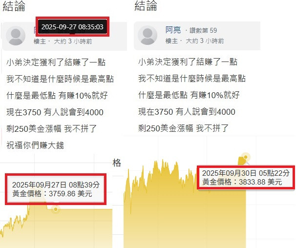 如果你自己是黃金的長期持有者, 提醒新手要居高思維是對的。但不必在震盪下跌時故意散播空頭言論,結果自己沒賣,等回漲時又得意洋洋。這對新手完全沒有幫助。
