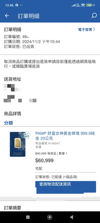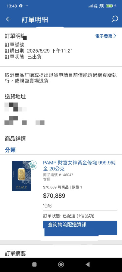 目前Costco 沒貨了,10/6 的Truney ,財富女神20克賣80200.
