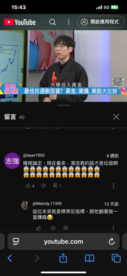 老哥 我無聊只能看看金價 買黃金要很多錢 我手會抖啊😱