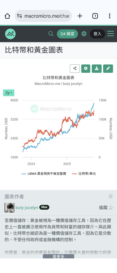 回覆 雄大:黃金跟比特幣相對關係70%一樣30%是相...