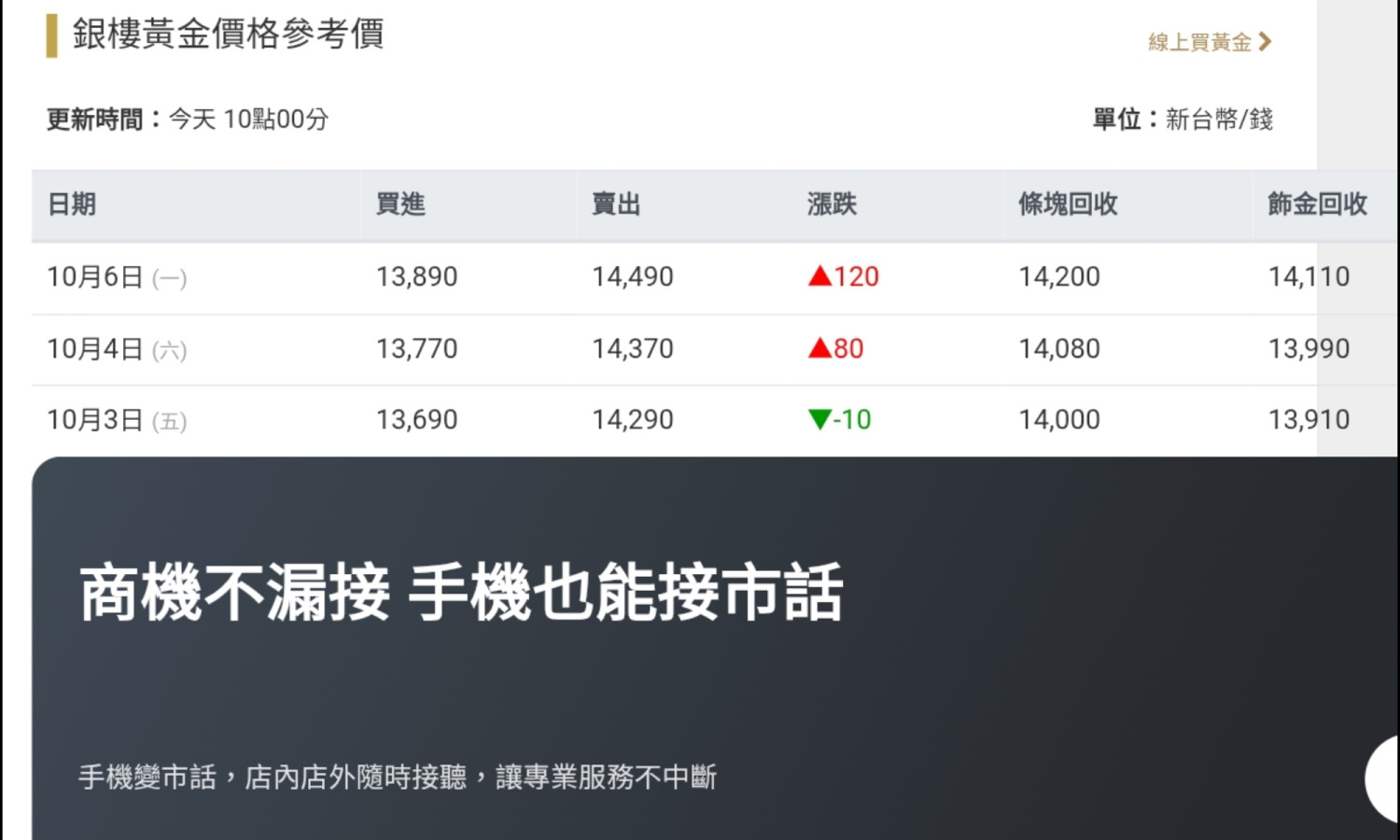 回覆 yesk:其實今天台幣貶很大,台幣金價賺兩邊,這裡...