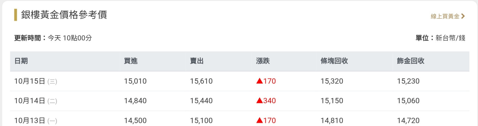 😊銀樓買賣實金,一天只有一個價格,沒辦法趁回頭抄短線,還好金金很爭氣,玩一玩還記得在高高的套房休息。