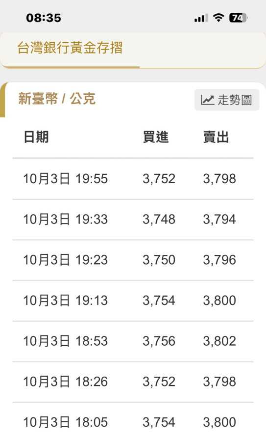 回覆 縁緣緣:中秋連假前10/3最後一盤黃金存摺的買入...