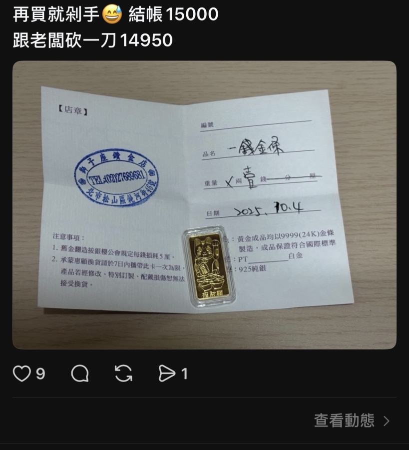 回覆 嘟122:有人今天買黃金飾品的嗎...