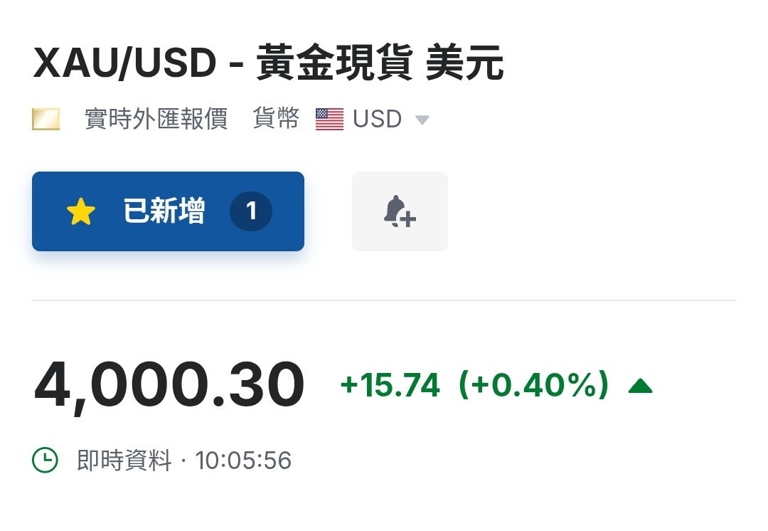 我個人參與了國際黃金創歷史新高四千美元每盎司的點讚工作👍