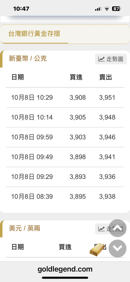 回覆 小金匠:3790,10月1-3日台銀進價,上飛機...