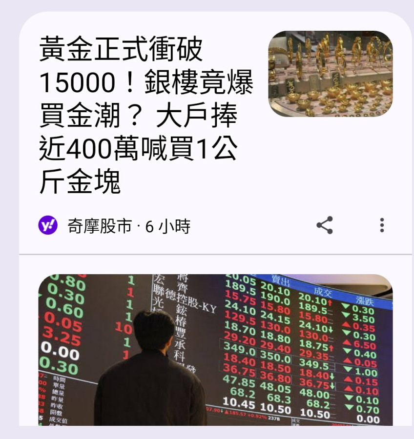 回覆 小猴劉:剛陪我朋友去買1公斤390萬,他戒股票買...