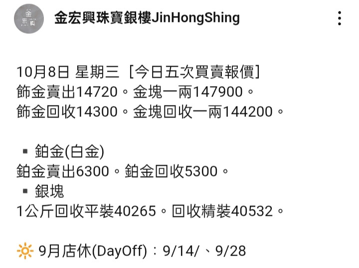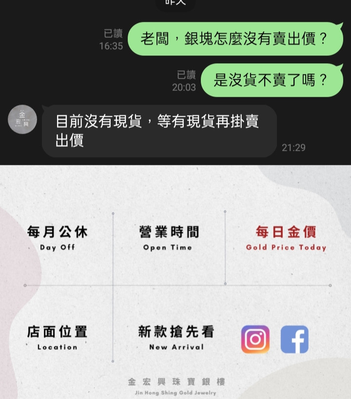 回覆 A06868:新竹某間銀樓白銀條塊已經缺貨好幾天了,但...