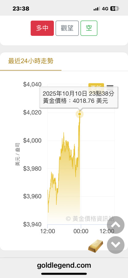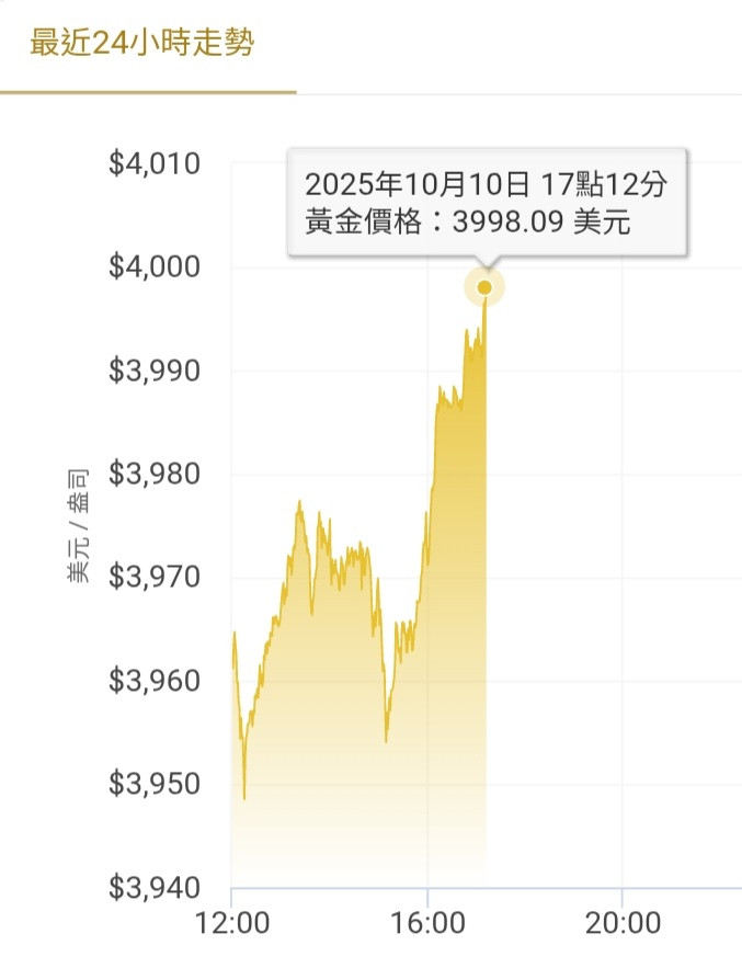 昨天破4000,太多人怕搶不到,一窩蜂的結果,就是急速反轉嚇嚇大家,我依然繼續持🈶,曾經經歷過幾次一天跌100美元的,所以心裡🈶強壯💪ㄧ點點,長期金金還在多頭,短暫下跌,還會再回來的,就說4000,總沒那麼容易站穩,要來回測試一下的!