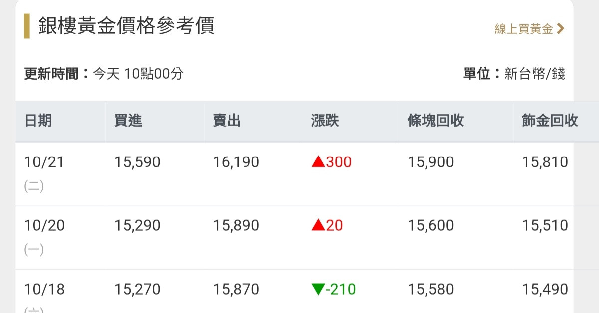 台灣銀樓買賣的實金真的大漲,還創新高!