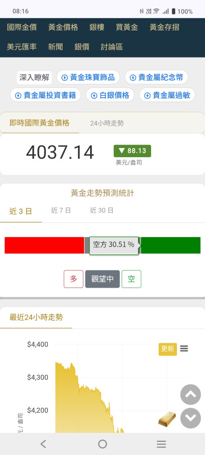 回覆 暗影:金價跌就爽,那漲到4500不就痛苦萬分了...