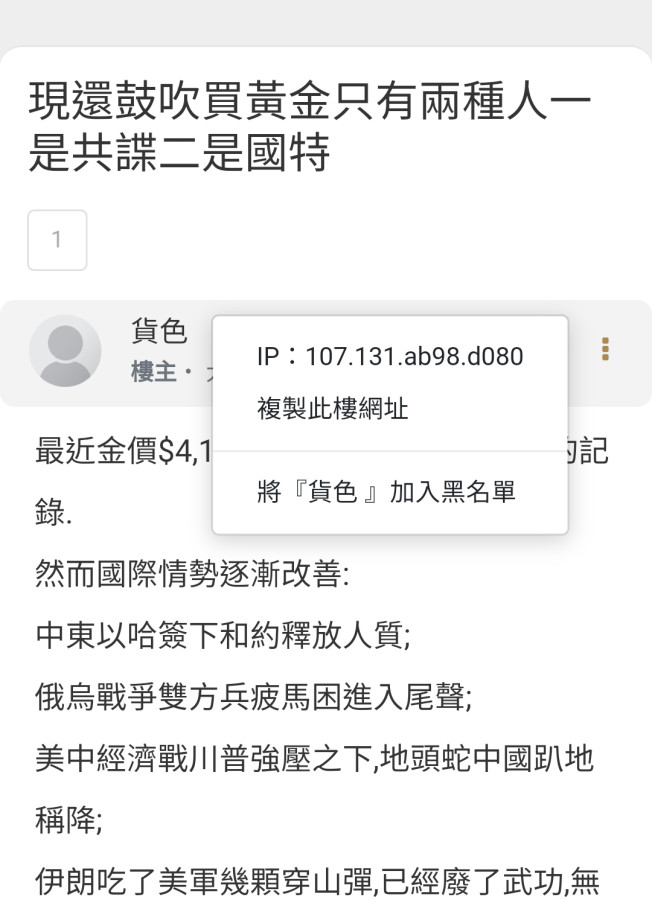 現還鼓吹買黃金只有兩種人一是共諜二是國特