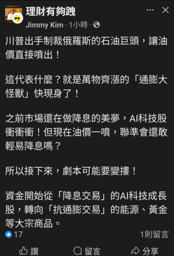 回覆 珍珠寶:石油漲,萬物皆漲😱...