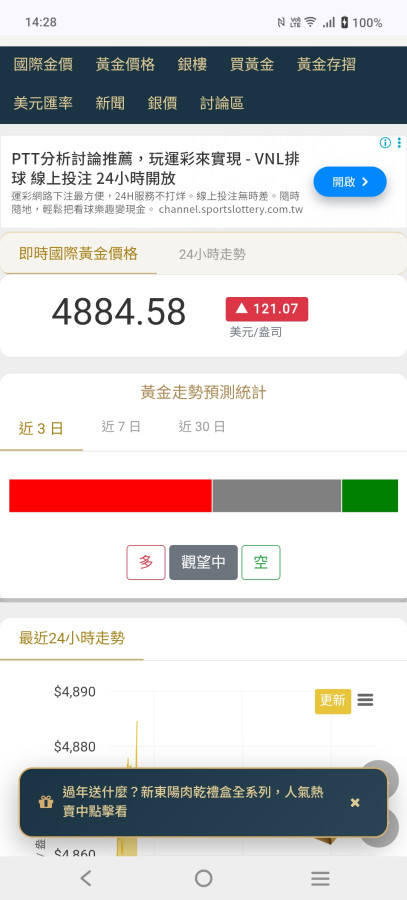 回覆 使者:衝吧金金等你突破高點在破4500😂😂...