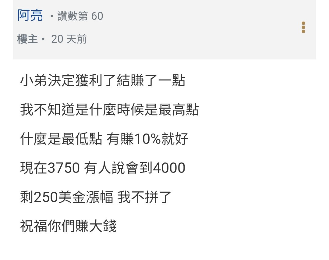 回覆 阿亮:現在還在多頭 賣掉可惜 天天漲我會叫你不...