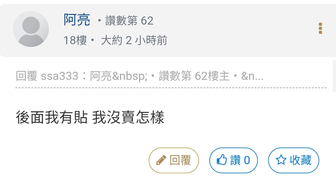 回覆 阿亮:後面我有貼 我沒賣怎樣...