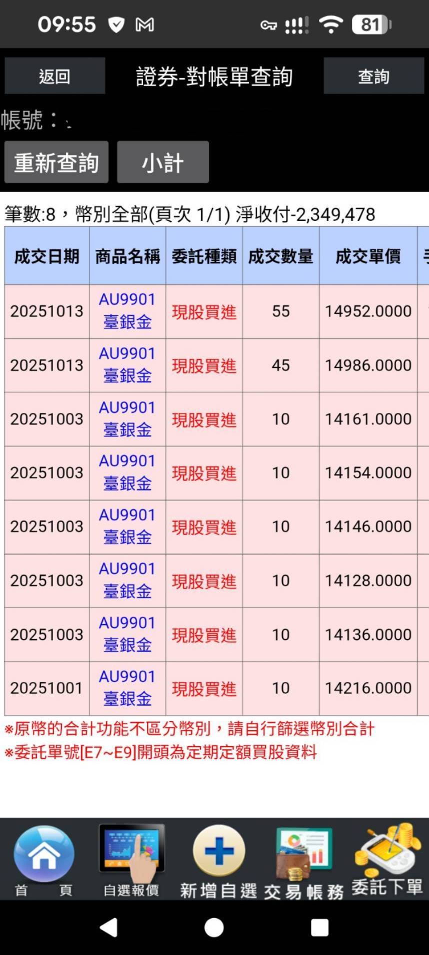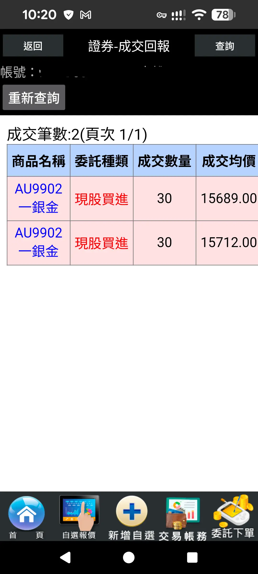 這是今天早上成交的櫃買黃金6兩