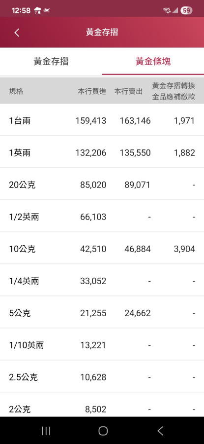 台銀好處就是分行多,只要多跑幾家冷門一點的分行,有機會領到小容量的金條。