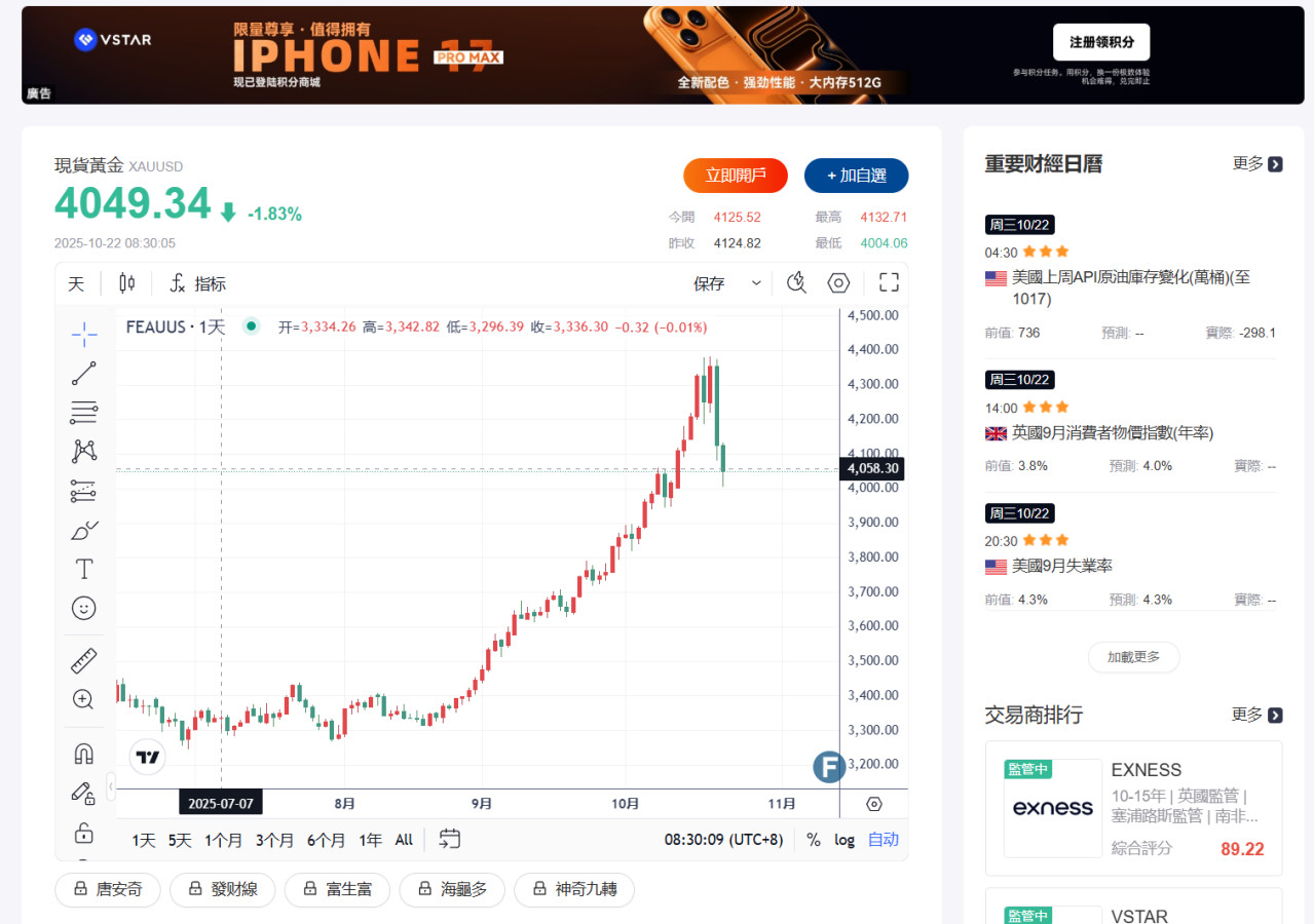 你可以在手機下載~FX168~,有即使黃金走勢可看