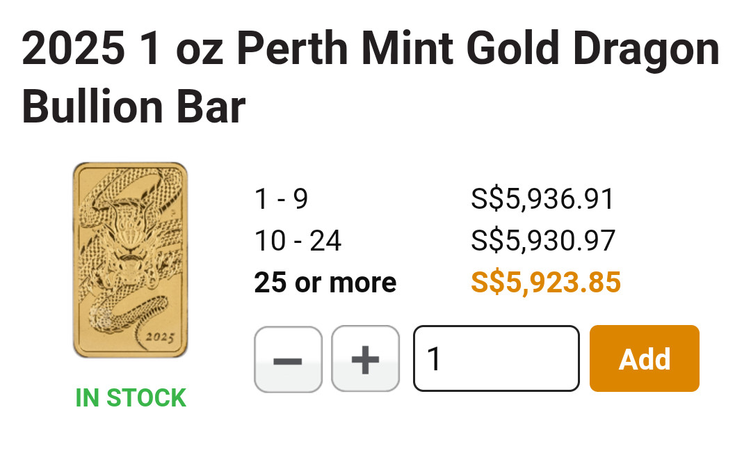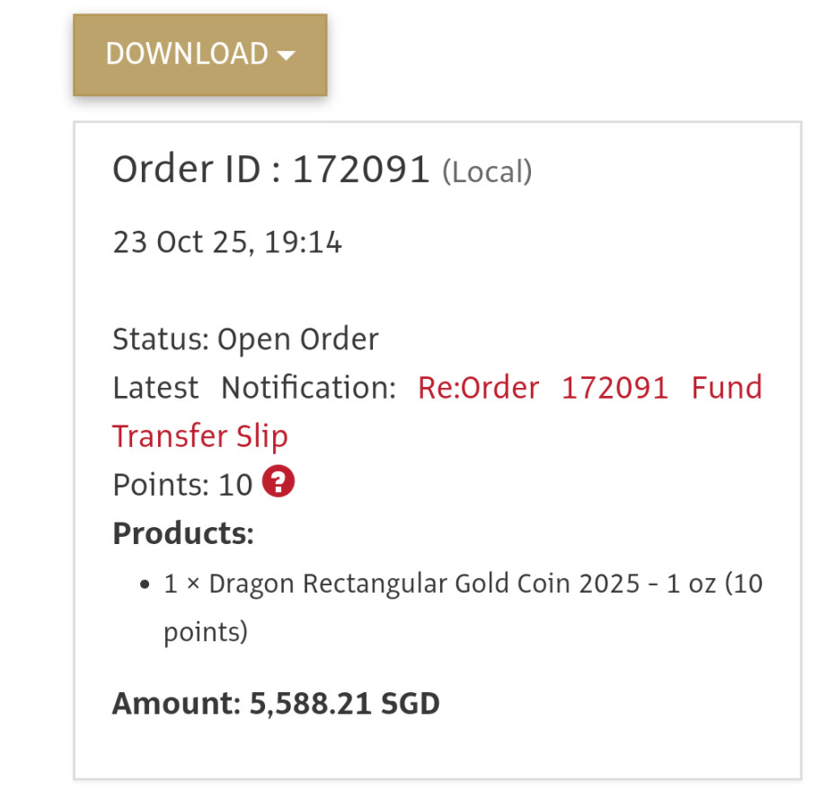 回覆 葉芬:剛補了一粒 是我買進的最貴的1盎司龍金幣...