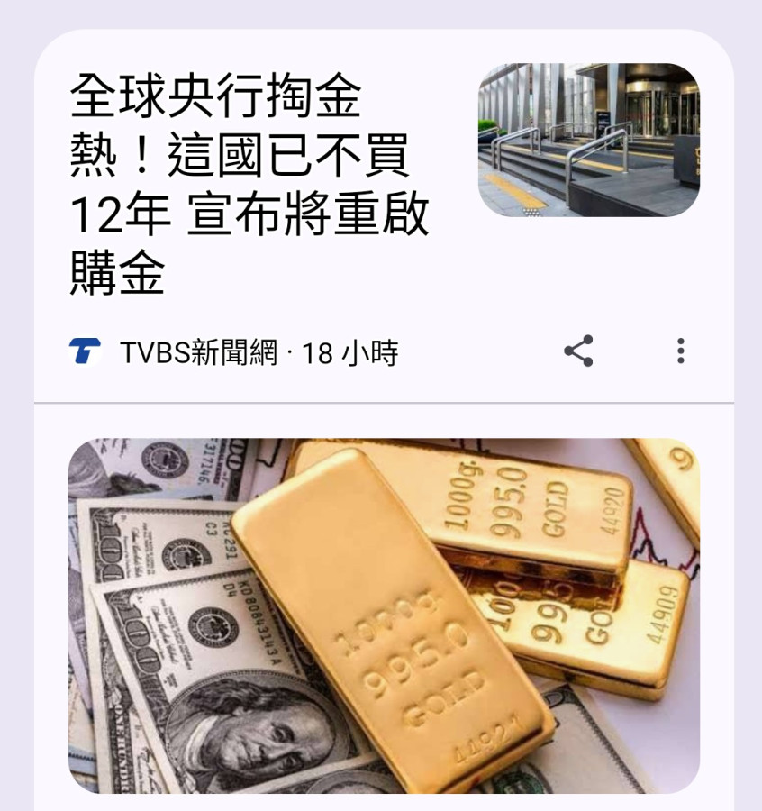 現實是 銀樓 有金塊 有現金 沒客人 價錢📈太高 也跌太快 實物金 沒客買賣 而金價成 股票化了 股票化 被合約金帶著上下 雲霄飛車 短期進出風險極大 被大咖上 下炒作 價格不穩 媒體也參一腳 這 就看你的定力 耐貪力 決定你的利益!能不戒慎嗎!
