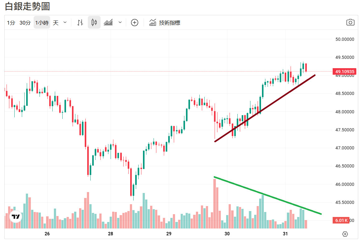回覆 阿喵:真的這波白銀漲的比黃金還兇, 4小時K也...