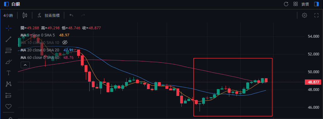 真的這波白銀漲的比黃金還兇, 4小時K也是多頭了..