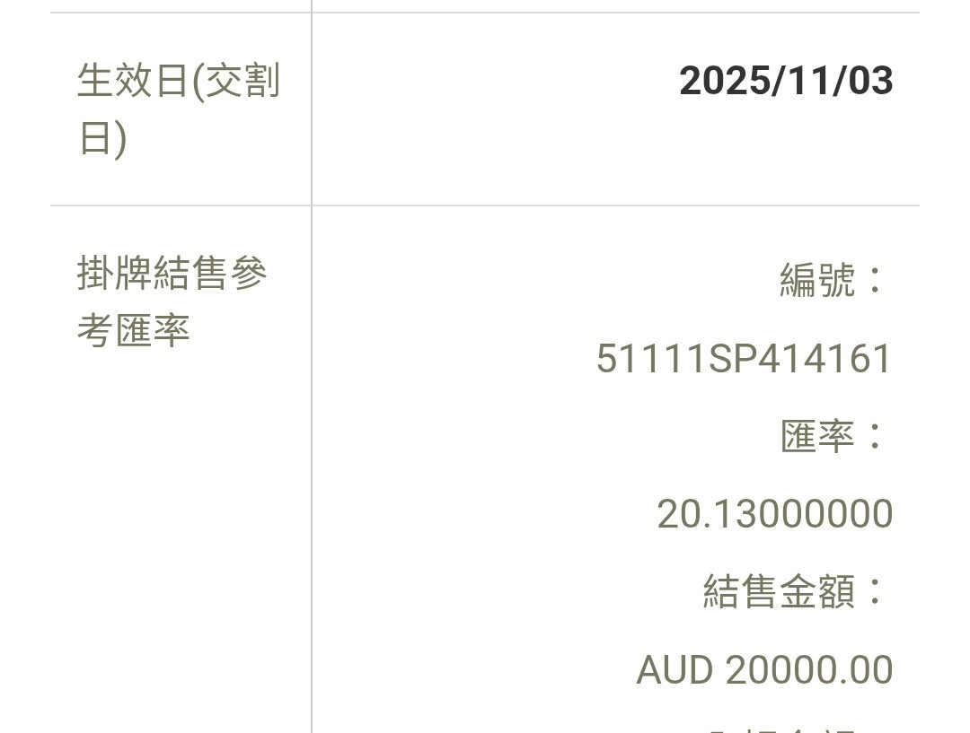 誤會了,我是澳幣保單解約,澳幣換匯台幣。看澳幣,着實難懂😵💫