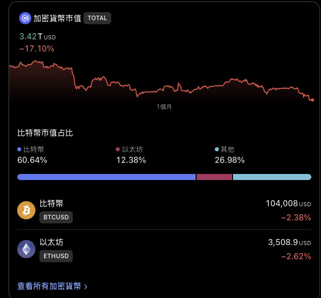 回覆 阿喵:這兩天以比特幣、以太幣崩下來,造成美元上...