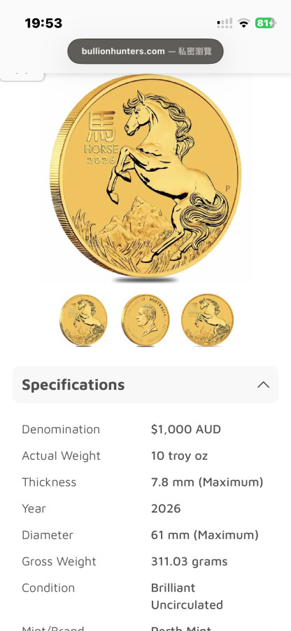 馬到成功!這個是剛上市時在高檔價格,所以已購買且到貨。 祝大家同好能夠買到理想且適合的黃金來收藏傳承。