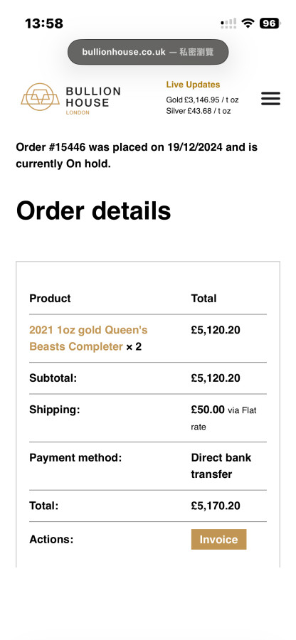 這一家英國貴金屬公司也還有貨,從產地買假不了。現在的價格2024年的幾乎可以買兩粒,現在只能買一粒😅😅😅