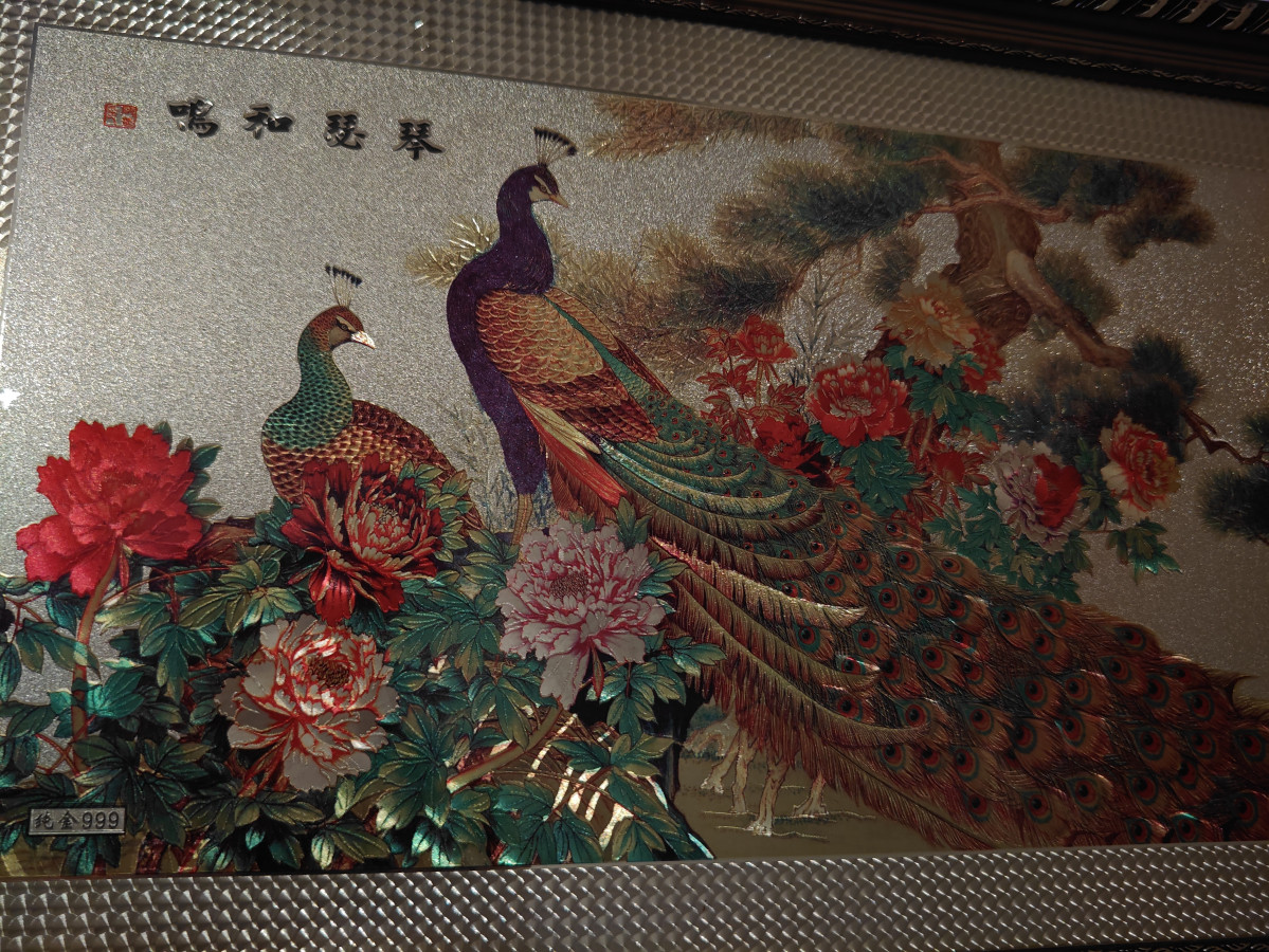 剛忽然瞄到,十幾年前結婚收到的賀禮美畫一幅,到現在仍然閃閃發亮,應該增值不少了吧? 但可能只是一咪咪金金壓成的薄片。😝