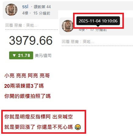但你表達自己的意見就算了,不要去攻擊別人的投資策略,像是質疑別人為什麼漲多了不賣。或者整天看跌鼓吹別人賣金,結果金價漲上去的時候改口說自己其實沒賣,賺了一波。