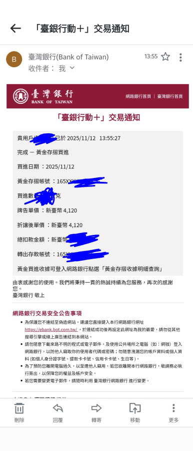 回覆 gho1117:請問各位金金前輩,如果買實體1~2兩。放...