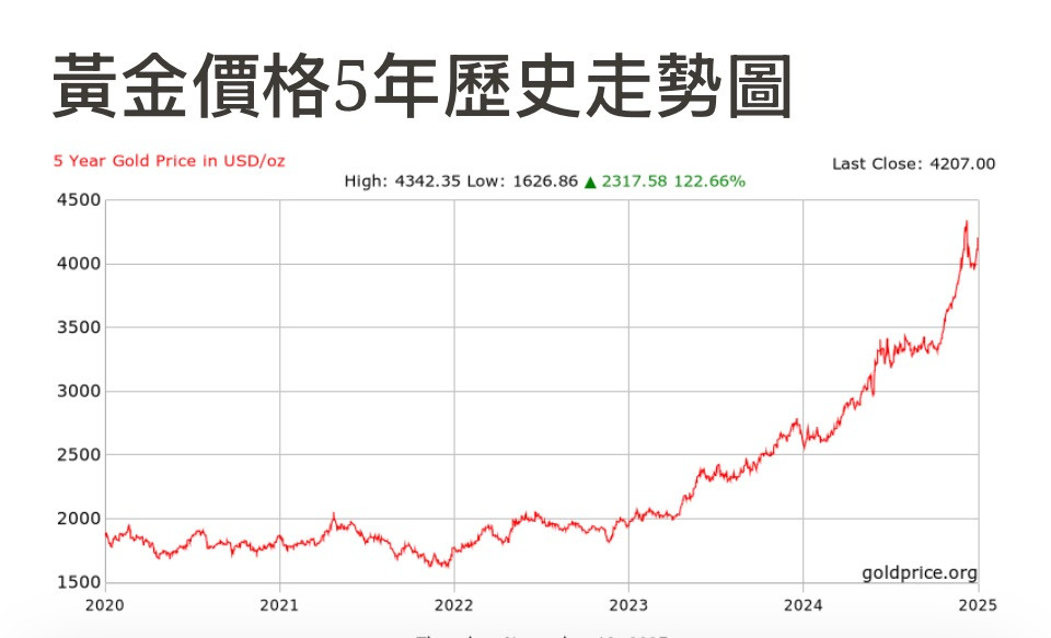 記得當初大約1800美元開始買進金金,中間🈶進進出出,事實證明,只有長抱才是對的,附上5年的走勢圖,這一次我🈶抱好抱🈵了!