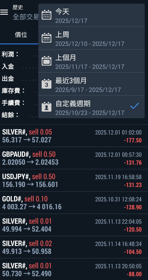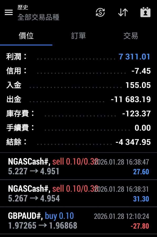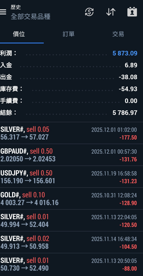 2. 把現金倉位控制到最小, 譬如現金只剩300元的話就只玩那指就好, 一單押0.01手, 上下100點就1元的輸贏, 扛個30單頂多扛100元, 反觀黃金就不一樣, 0.01手上下10點就是10元的輸贏, 扛個10單300元本金一下就爆了。