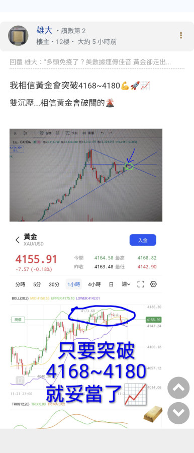 回覆 雄大:我相信黃金會突破4168~4180💪🚀📈...