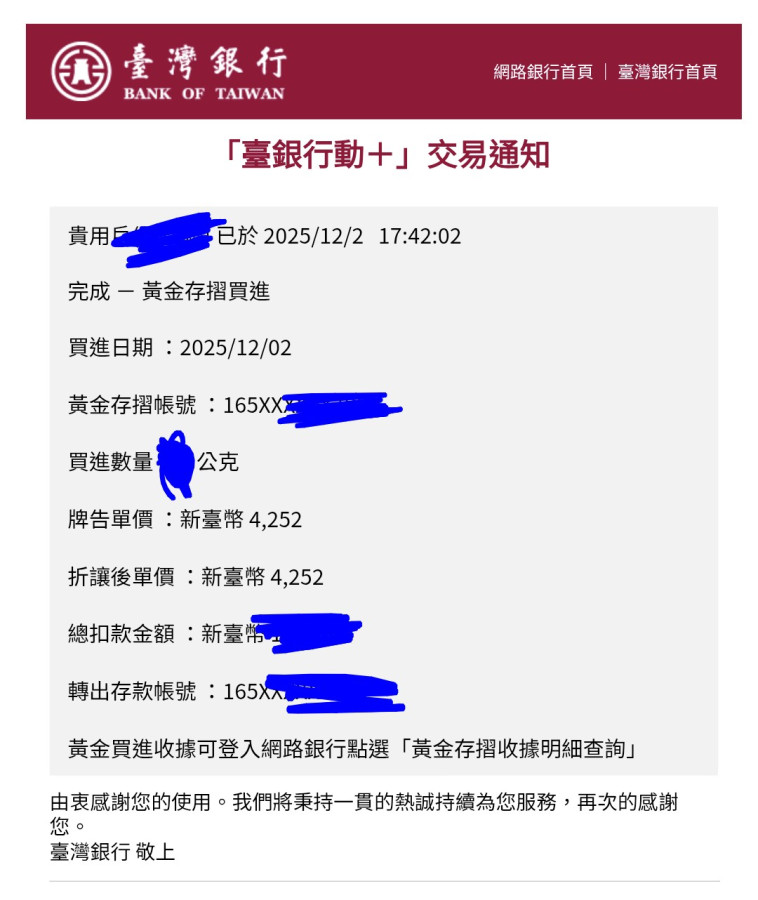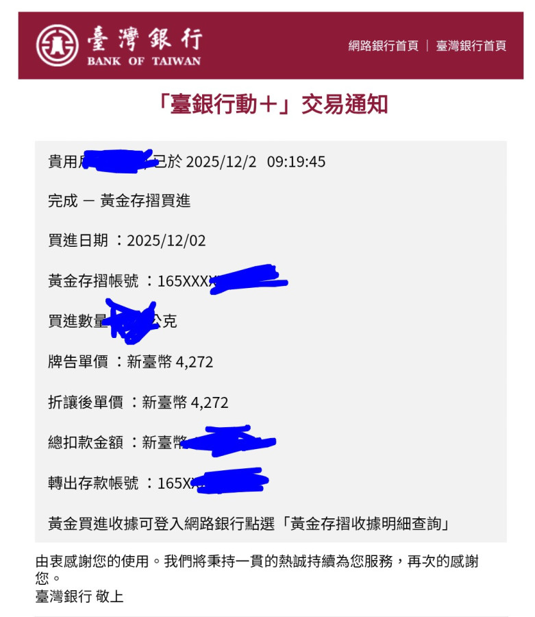 不過還是那句話,如果AI泡沫破了,全球股市崩盤,那黃金價格初期大概也會暴跌。身邊請務必保留足夠的生活費。😅