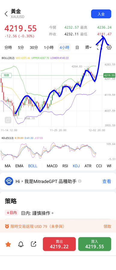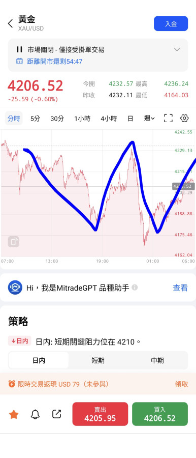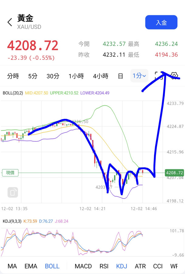 我感覺還會有一波探底到4200才會跑雄大的走勢, 所以我會在4205 4200 4195 再各埋一單多單