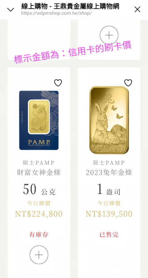 小弟最近才開始接觸金條 知道有3這家買黃金的管道( 台銀買黃金好像都要提交資料 很麻煩的感覺) 我住高雄 本來想到王鼎門市買 但是發現 王鼎好像都偏貴??!! 100克的王鼎現貨pamp(452800元) vs 100克的truney預購pamp(442571元) vs 100g炫麗預購UBS瑞士(435212元)
