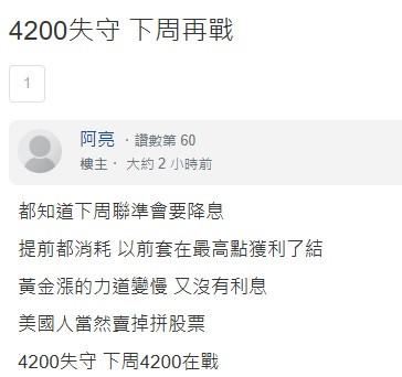 回覆 阿亮:都知道下周聯準會要降息提前都消耗 以前套...