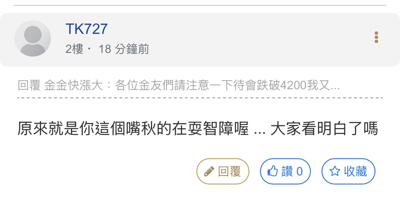 回覆 金金快漲大:我可以說我自己耍智障但是你不行哦!已截圖...