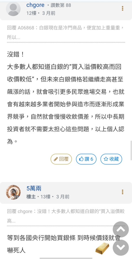 回覆 A06868:沒錯,白銀現在還是冷門商品,便宜貨顯得特...