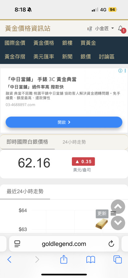 今年3月我入手最低29,最高37!眼看快破62了!有人說買黃金如同坐邁巴赫穩重,玩白銀像騎哈雷比較刺激,新手慎入別追高暈了😅