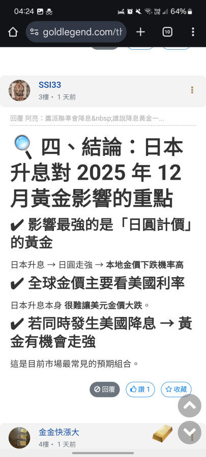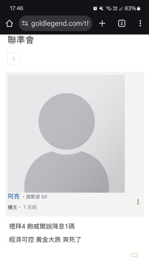 回覆 阿亮:鷹派聯準會降息 誰說降息黃金一...