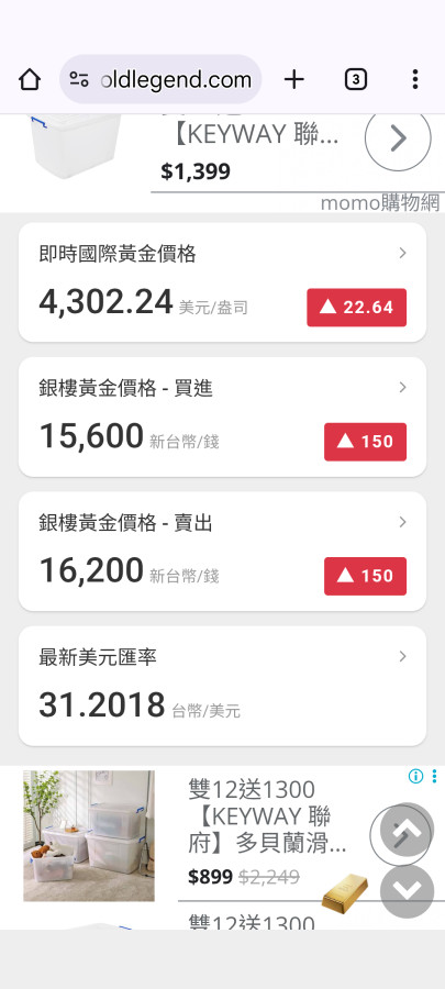 線上買黃金更新時間:今天 10點00分單位:新台幣/錢