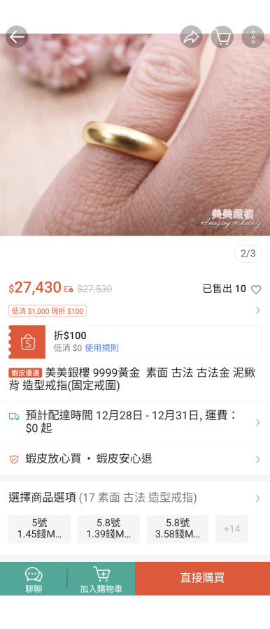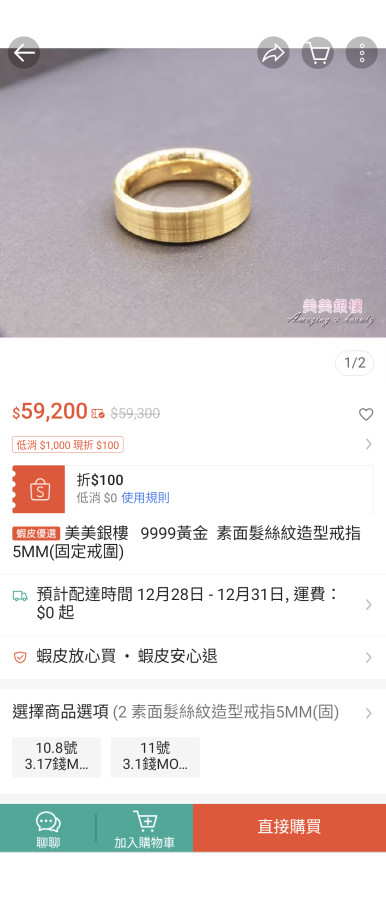 這款戒指板橋美美有現貨,不過古法金的戒指磨擦到會有黑色痕跡在上面,戒指又容易磕碰到,給雄大大參考