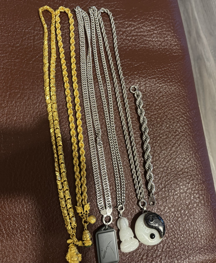 目測實心文武鍊應該有個5-6兩😁我這幾條手工麻花都是找老店家訂作的,把長斑的一台兩熔掉製成😁