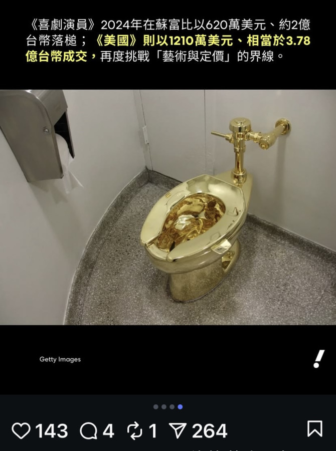 結果發現該金桶101公斤左右拍賣1210萬美元,還報導是藝術!!!